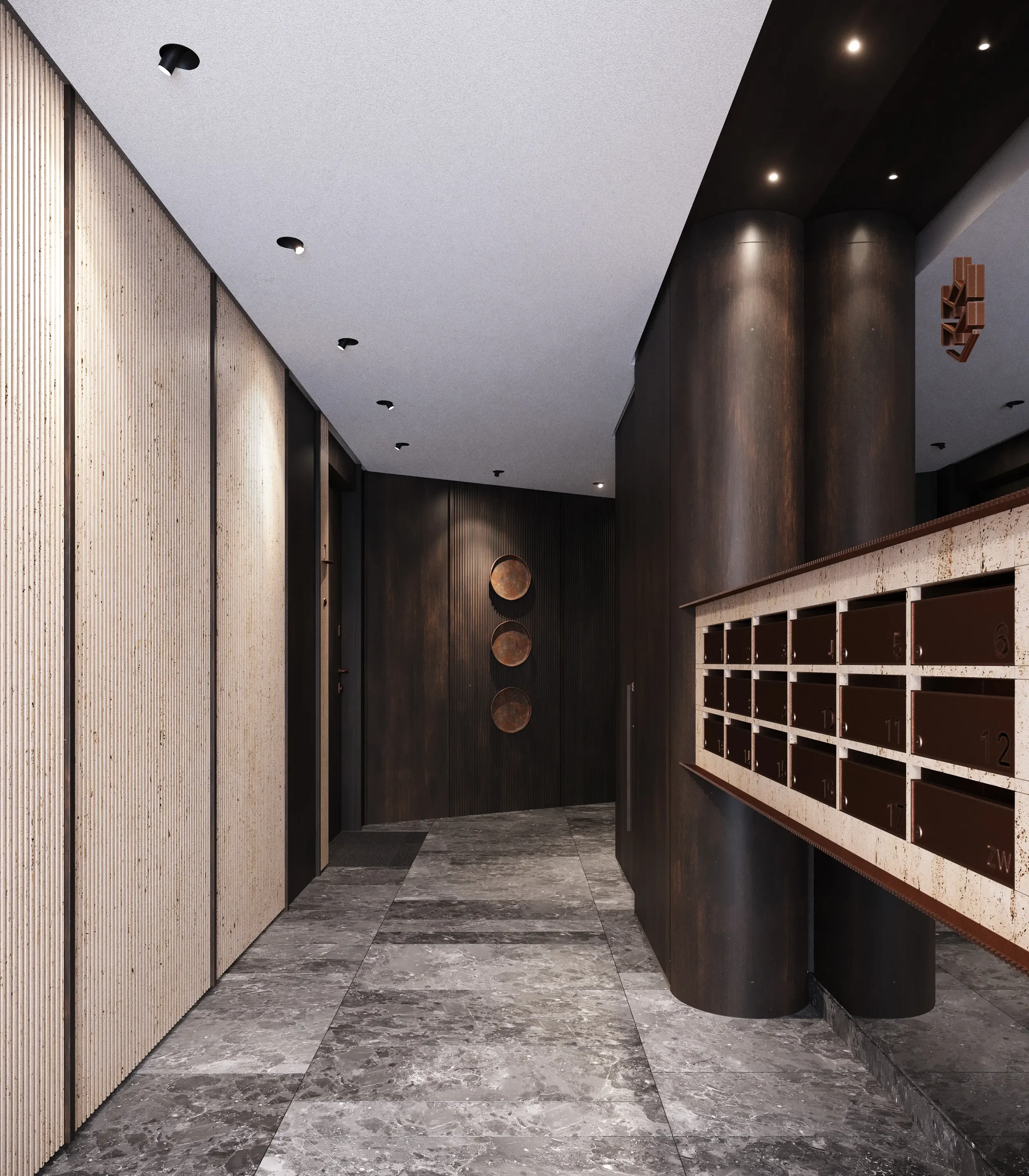 Interior design and curated art by Ines Lulkowska, building A, Młyny Mogilska Residence, Noho Investment, Cracow, Poland